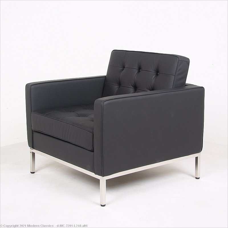 Florence Knoll Lounge Chair - Premium Black Leather - with Buttons