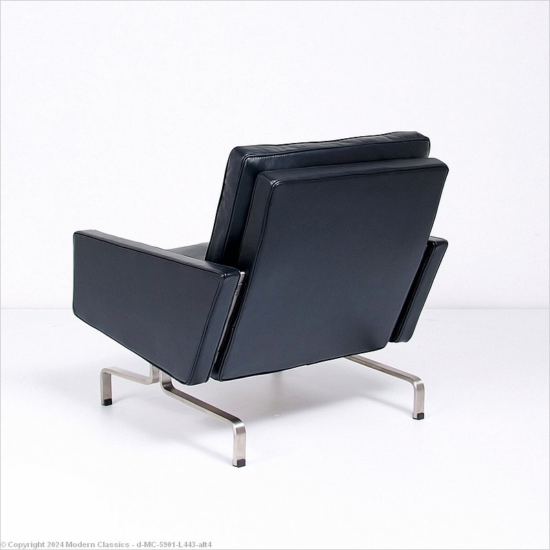 The PK31 series was first introduced in 1958 as both a lounge chair and a modular seating element that could be combined to create sofas with two, three or even four times the length of the single chair alone. Kjaerholm saw this flexible, module system as a way to ensure harmony in seating groups of combining chairs and sofas, and reflected his desire to create furniture that could be tailored to the size and shape of the room. The PK31 chair is also forms a perfect 76cm cube, which is truly indicative of Kjaerholm's pursuit of ideal forms. The construction of the PK31 consists of separate panels for the seat, back and sides. Underneath, are brushed satin stainless steel leg frames that are connected with a separate steel bar that is one length for the single chair, double that for the loveseat and three times that length for the sofa. By treating the side leg frames and side panels as independent elements, Kjaerholm created a flexible system where the only variable element is the steel bar that connected the side leg frames and where the side panels were placed.
