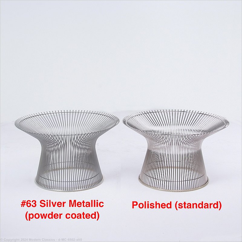In comparing our Platner style dining table and the one Knoll sells, there is a slight visual difference in the way we curve our base, but most people don’t notice this. We think our version of this table is better than the Knoll version, along these points: