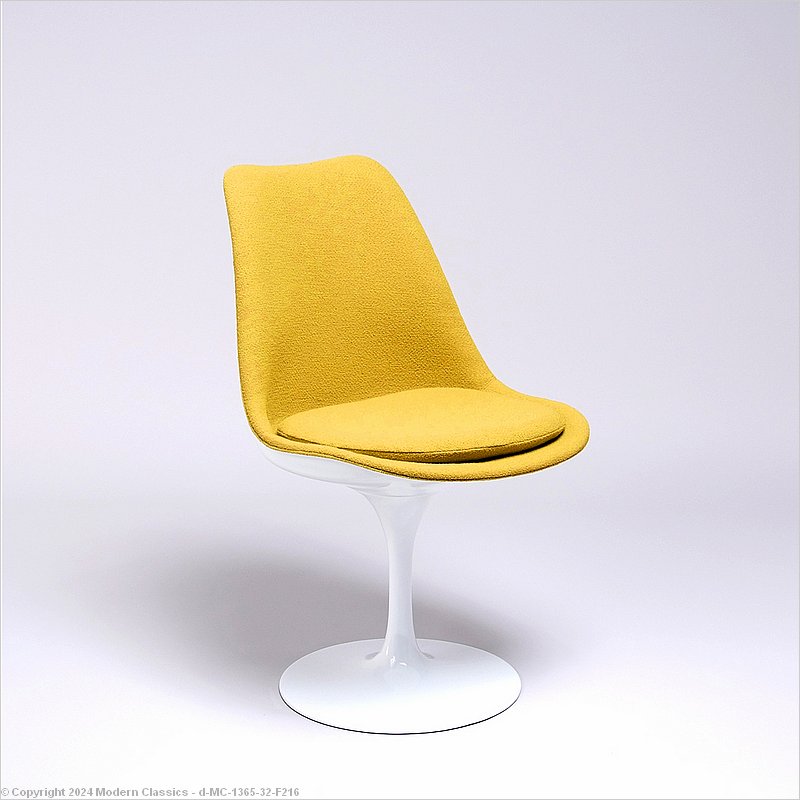 Saarinen Style: Tulip Side Chair - White Shell - Fully Upholstered - Citrus Yellow